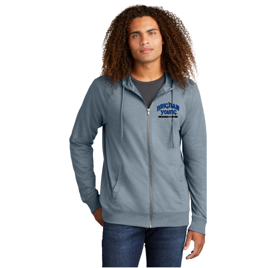 / BYU Swim District DT573 Flint Blue Men’s Zip Tee Hoodie Brigham Young